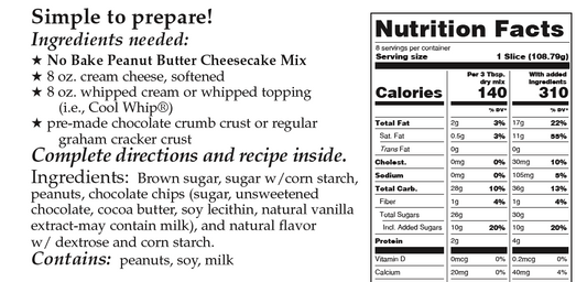 Downhome Deliciousness Peanut Butter No-Bake Cheesecake Mix